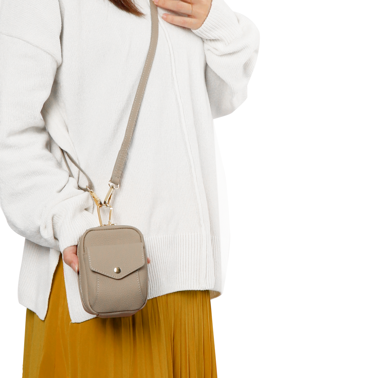 化粧品やスマートキー、ハンカチなどの身だしなみ品の収納もOK。スマホショルダーやバッグへはワンタッチで取り付けられるため、ちょっとしたお出かけやお散歩時にも手ぶらで快適にお使いいただけます。